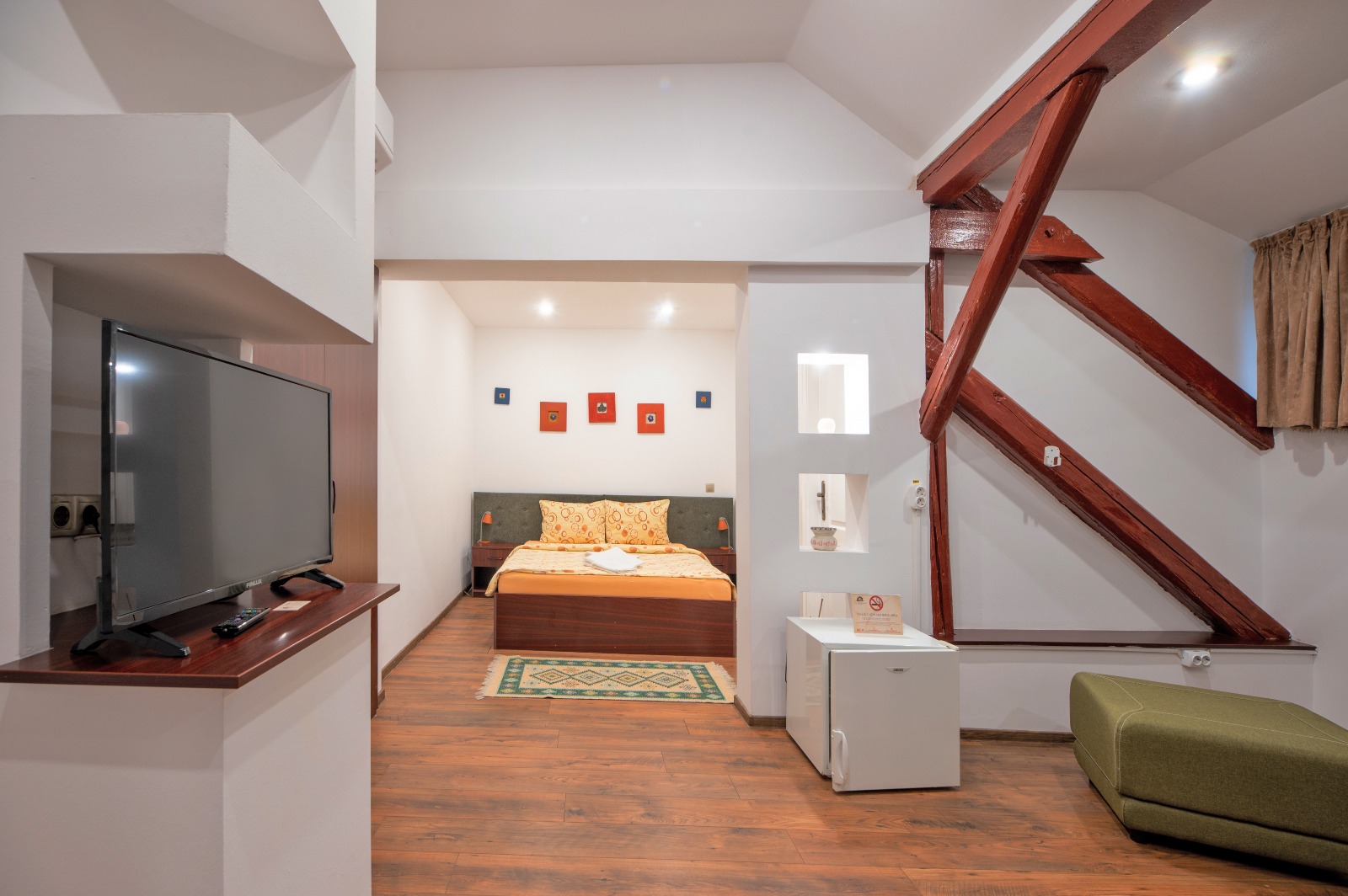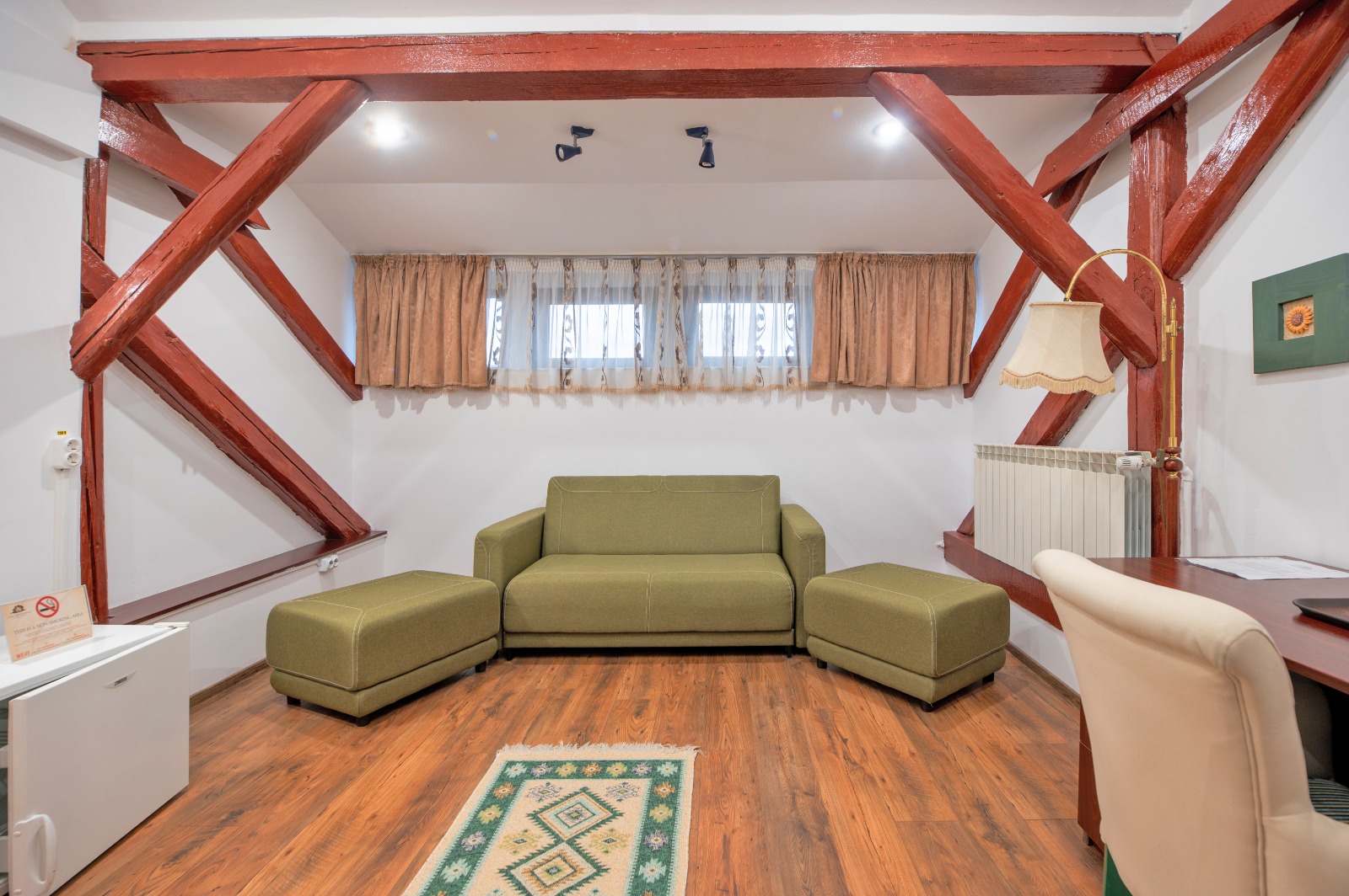 Our suites provide the ideal solution for guests who require more space and especially for those travelling with their families. Each of our suites has a bedroom, living room with an extensible couch and private bathroom with shower cabin. All our suites have air conditioning, minibar, safe-deposit box, cable TV, wi-fi, bathrobe, hairdryer. Smoking is forbidden in our suites. In the lobby of the reception guests are invited to a nice cup of coffee or tea. The chosen colors and atmosphere ensure a pleasant stay.